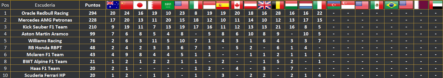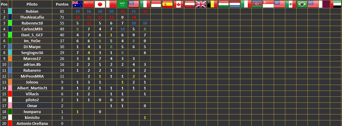 Consulta la clasificación general de pilotos y constructores de la primera división del campeonato SoloF1.
